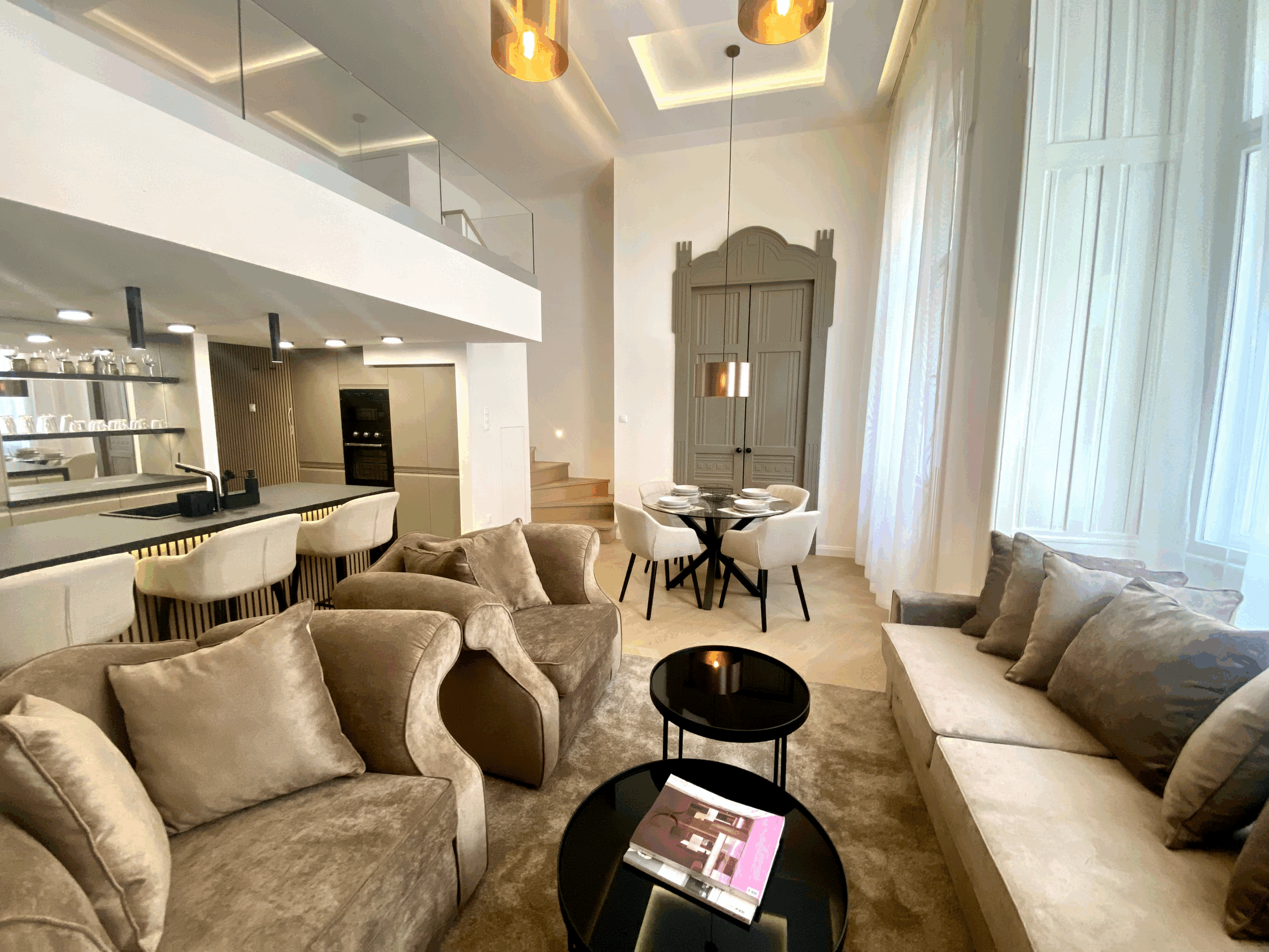 Az Operaház szomszédságában, sétáló utcában, egy gyönyörű, szecessziós épületben ( Napoleon Udvar), eladó két, egymás melletti, luxus minőségben, teljeskörűen felújított és berendezett lakás.